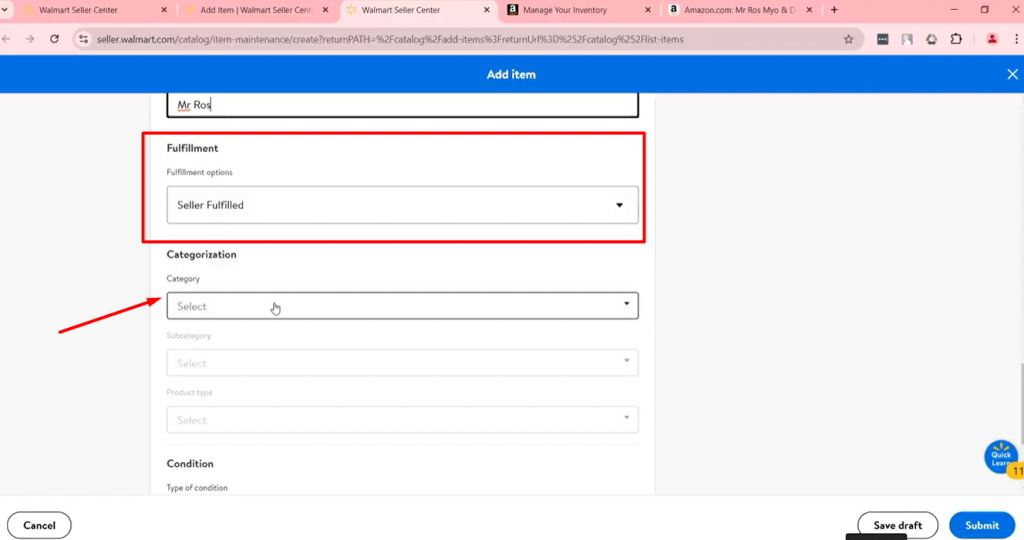并且,通过沃尔玛配送服务(WFS)或另一个具有退货能力的B2C美国仓库进行配送。如果你具备这些条件,就可以开始销售了。