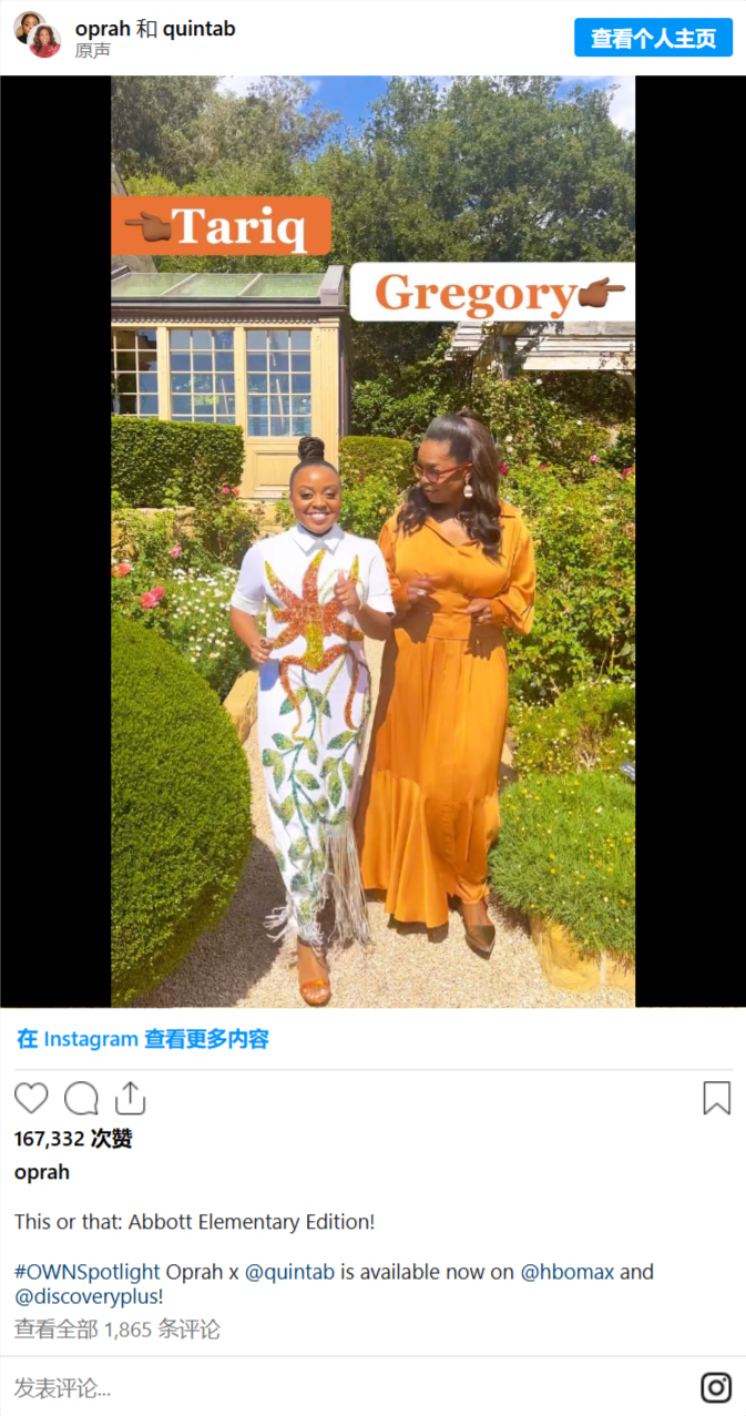 这是奥普拉和女演员昆塔·布鲁诺森的一个例子。