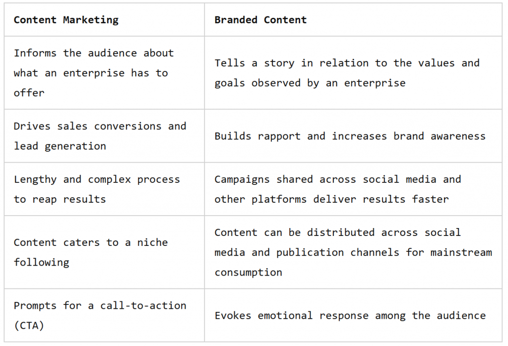 另一方面,品牌内容营销是一种更微妙的方法。在品牌内容营销中,内容不会过分宣传任何产品;相反,它围绕品牌的愿景和价值观构建故事。
