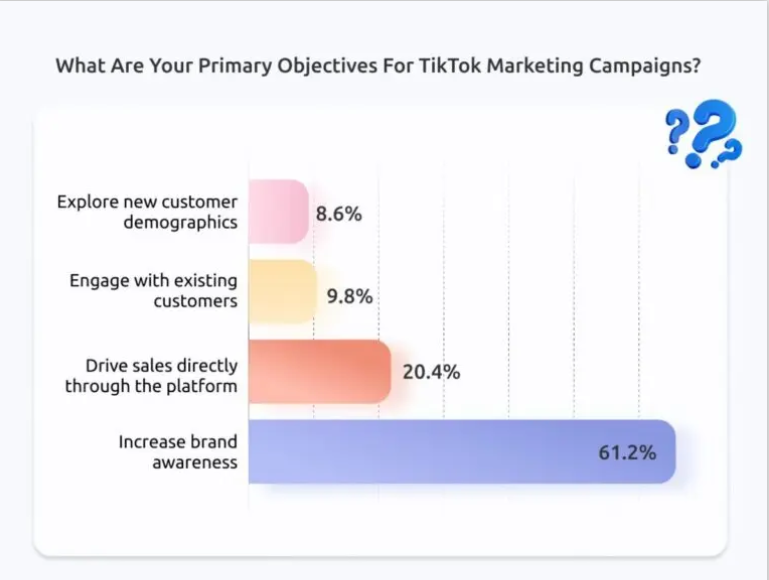 你可以在任何主要社交媒体平台上与网红合作。以TikTok为例。在我们的TikTok营销报告中,我们发现61.2%的营销者使用这个平台来提高品牌知名度,而20.4%的人努力实现直接销售。你可以通过网红营销实现这两个目标。