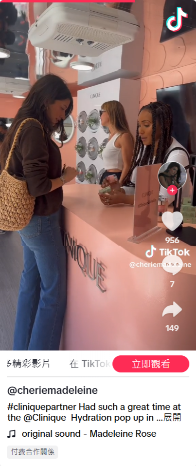 Clinique与美妆网红合作,传播快闪车的消息并制造话题。以下是其中一位网红发布的TikTok视频。