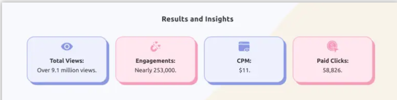 在我们的6月网红营销报告中,我们分享了Zilla的网红营销活动,他们与美妆创作者合作,然后在他们的内容上投放Spark广告,进一步获得了952,709次观看。这些广告帮助他们在其帖子上获得了38,000次付费点击,加上他们仅通过网红触达就获得的1,100,000次观看。