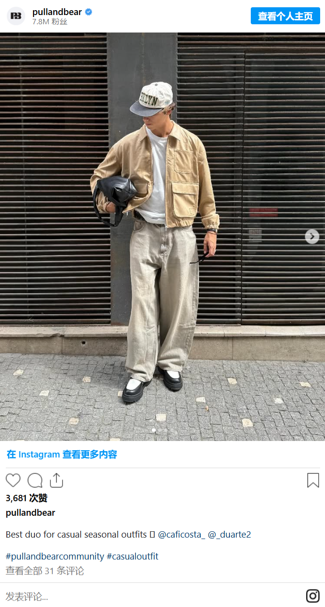 例如,服装品牌Pull and Bear经常在其Instagram页面上重新发布微型网红穿着他们衣服的图片和视频。这些图片不是促销性的。相反,它们只是展示了网红在日常生活中的着装风格和穿着品牌服装。