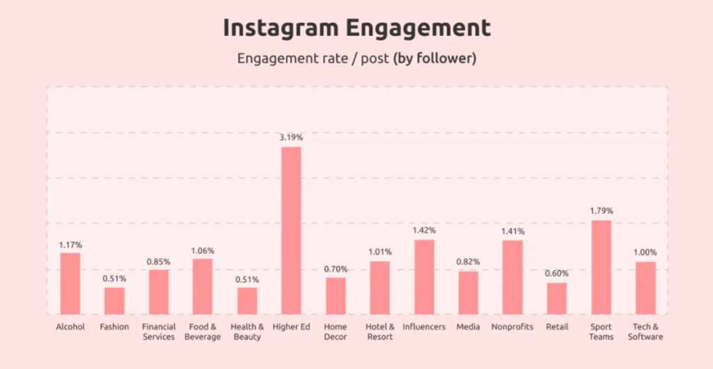 常识告诉我们,互动率越高越好。但根据平台标准,什么才算是“高”呢?大多数专家会建议至少要达到1%,特别是当Instagram的互动率持续高于其他社交网络时。