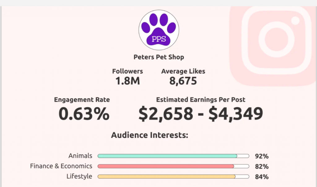 另外,您还可以使用我们的Instagram收入计算器来衡量您的账户整体互动率。虽然这个工具是为了计算影响者的预计收入而创建的,但它也分析其他个人资料指标,如关注者数量、平均点赞数和互动率。它甚至显示了您受众的兴趣分布,以便您更好地了解如何与他们互动。