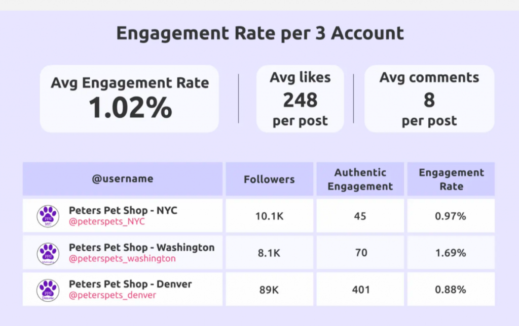 如果您想衡量多个子账户的互动情况,您还可以使用我们的Instagram批量互动计算器。这个工具可以让您一次性为最多20个Instagram账户进行批量互动检查。它不仅会为您提供每个账户的互动率明细,而且还会计算所有账户的平均互动率。
