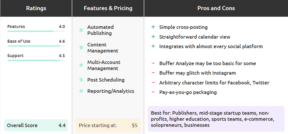 Buffer广为人知的是用于安排Twitter和Facebook帖子,但也适用于Instagram。在从桌面或移动端准备好帖子后,Buffer会直接发布到Instagram。与其他第三方日程安排工具类似,它允许你通过单张图片自动化帖子(你必须有一个Instagram商业账号)。对于包含多张图片或视频的帖子,你仍然可以提前安排发布。