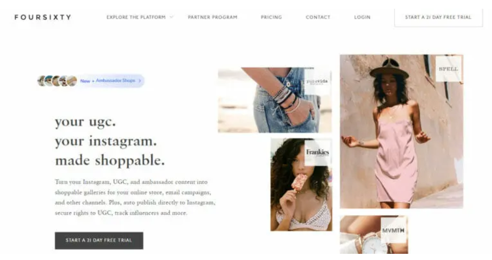 现在我们都知道Instagram是企业推广产品和服务的不二之选。但你是如何直接在Instagram上销售产品呢?Foursixty允许你通过将帖子链接到产品页面来实现这一点。它还允许客户将商品添加到购物车,而无需在网上浏览网站。